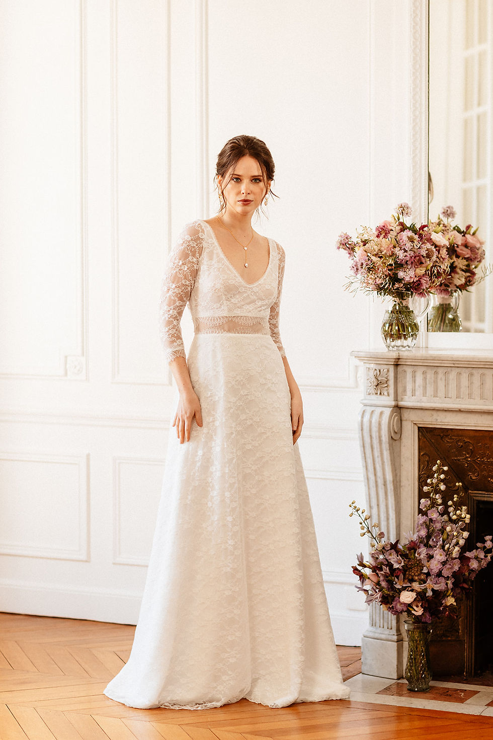 La plus part des robes proposées au showroom sont réalisées sur mesure et entièrement personnalisables. Elles sont fabriquées en France. Le budget de ces robes varie de 250€ à 1000€ pour une robe courte ou un ensemble pantalon et de 1250€ à environ 2500€ pour une robe longue sur mesure.