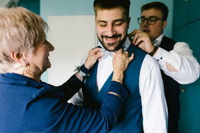 Adrien a fait faire son costume 3 pièces bleu vert sur mesure Blandin & Delloye chez la brune & le barbu.