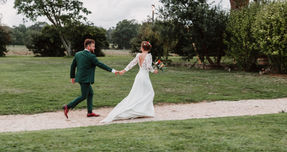 Elle a choisi la robe Zoé de la créatrice Elsa Gary, qu'elle a personnalisé avec des manches longues, une jupe en twill et une quille en dentelle. Julie a également trouvé son soutien gorge dos nu back to glam au showroom.
