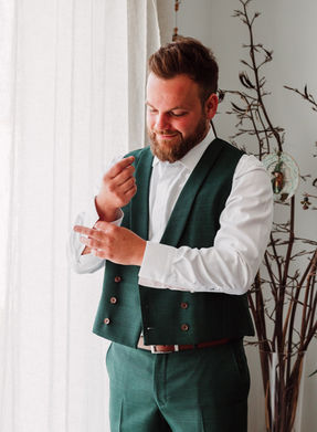 Johan a fait faire son costume 3 pièces sur mesure Blandin & Delloye ainsi que ses accessoires chez la brune & le barbu.