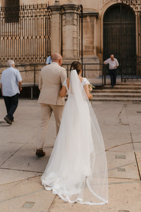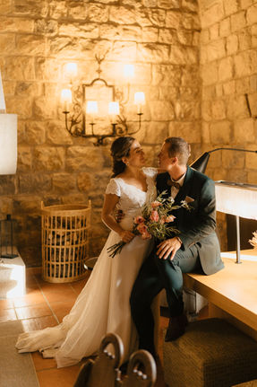 Elle a choisi la robe Malaga de la créatrice Elsa Gary, qu'elle a personnalisé avec une belle traine amovible. Ainsi que la robe Aube Claire en vente privé que nous avons raccourci pour danser jusqu'au bout de la nuit.